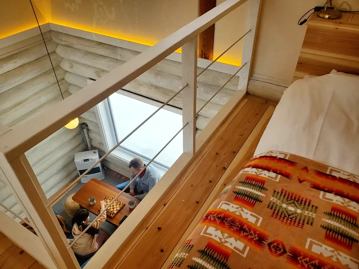 ログコテージは、室内にミニキッチン、シャワー設備、トイレを完備しており、自宅のような快適さを体験していただける完全なプライベート空間となっております。広々としたウッドデッキでは、北海道の清々しい空気を満喫しながら、ゆったりとした時間を過ごすことができます。